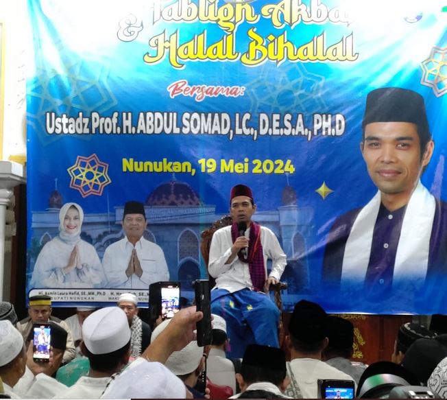 Bupati Nunukan dalam sambutannya menyampaikan ucapan terima kasih dan penghargaan setinggi-tingginya kepada Ustadz Abdul Somad karena ditengah-tengah kesibukannya masih bisa menyempatkan diri hadir di Nunukan.