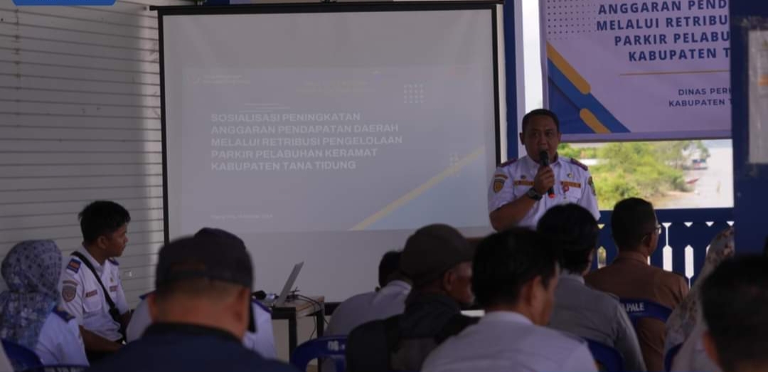 TANA TIDUNG, MK – Sosialisasi Peningkatan Anggaran Pendapatan Daerah Melalui Retribusi Pengelolaan Parkir Pelabuhan Keramat Kabupaten Tana Tidung di laksanakan di Ruang tunggu Pelabuhan Keramat Senin, (14/10).
