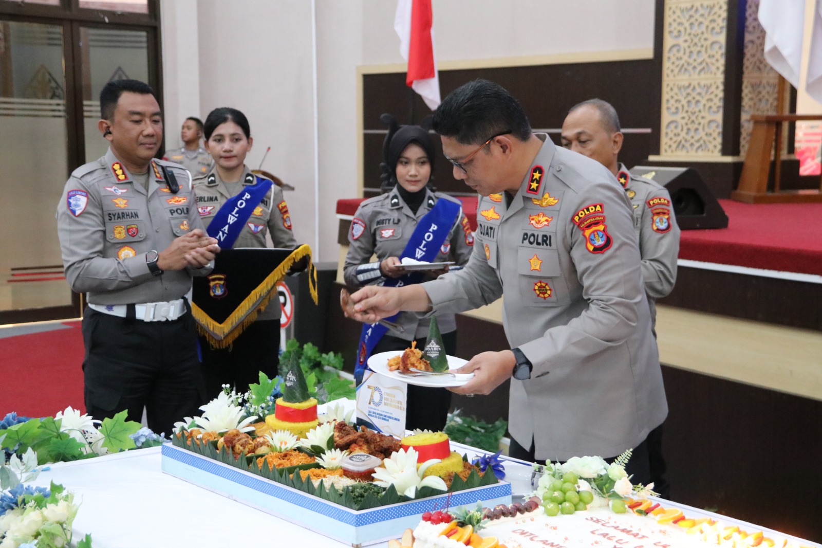 TANJUNG SELOR, MK – Ditlantas Polda Kalimantan Utara mengadakan acara syukuran dalam rangka memperingati Hari Lalu Lintas Bhayangkara ke-70 tahun 2025. Acara ini berlangsung di Gedung Rupatama Kayan Polda Kaltara pada Senin (22/09/2025), dan dihadiri langsung oleh Kapolda Kaltara Irjen Pol. Djati Wiyoto Abadhy, S.I.K, Brigjen Pol. Soeseno, S.I.K, serta sejumlah pejabat utama (PJU) Polda Kaltara.