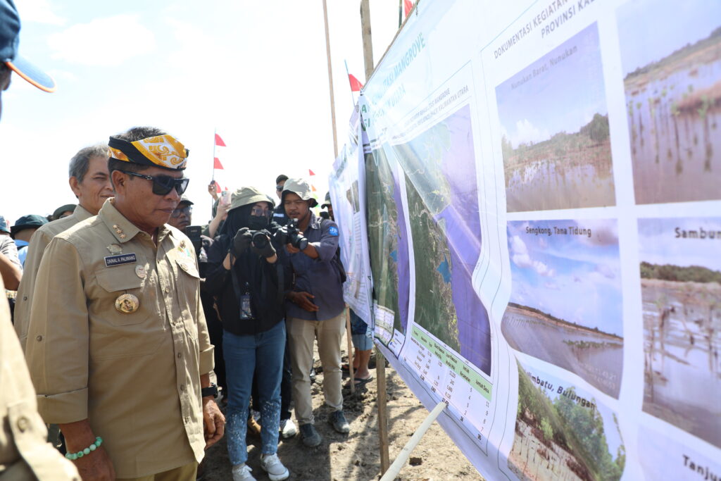 TANA TIDUNG, MK – Gubernur Kalimantan Utara Dr. (H.C). H. Zainal A Paliwang, M.Hum, Mengikuti Kick – Of Penanaman Mangrove For Coastal Resilience (M4CR) Provinsi Kaltara bersama Kepala Badan Restorasi Gambut dan Mangrove (BRGM), Ir. Hartono M.Sc., Sestama BGRM, Dr. Ir. Ayu Dewi Utari, Lead Enviromental Specialist For Indonesia and Timor Leste and Pacific Word Bank, Franka Braun, Senior Natural Resource Management Word Bank, Ambrooise Breiner, Wakil Ketua Dewan Perwakilan Rakyat Daerah (DPRD) Kaltara, Andi Hamzah, beserta Perkopimda Kaltara maupun Kabupaten, di Desa Sengkong, Kecamatan Sesayap Hilir, Kabupaten Tana Tidung. Senin (24/6)