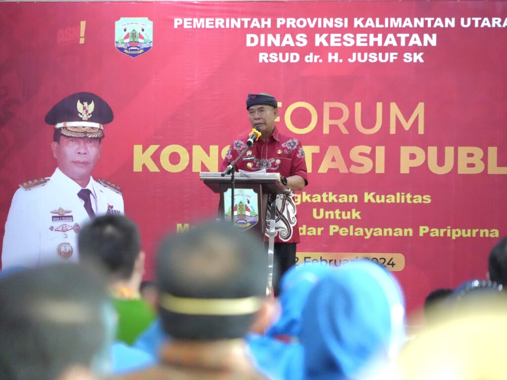 TARAKAN, MK – Gubernur Kalimantan Utara (Kaltara), Dr. (HC) H. Zainal Arifin Paliwang, S.H., M.Hum membuka secara langsung kegiatan Forum Konsultasi Publik (FKP) Rumah Sakit Umum Daerah (RSUD) dr. H. Jusuf SK tahun 2024, Kamis (22/2).