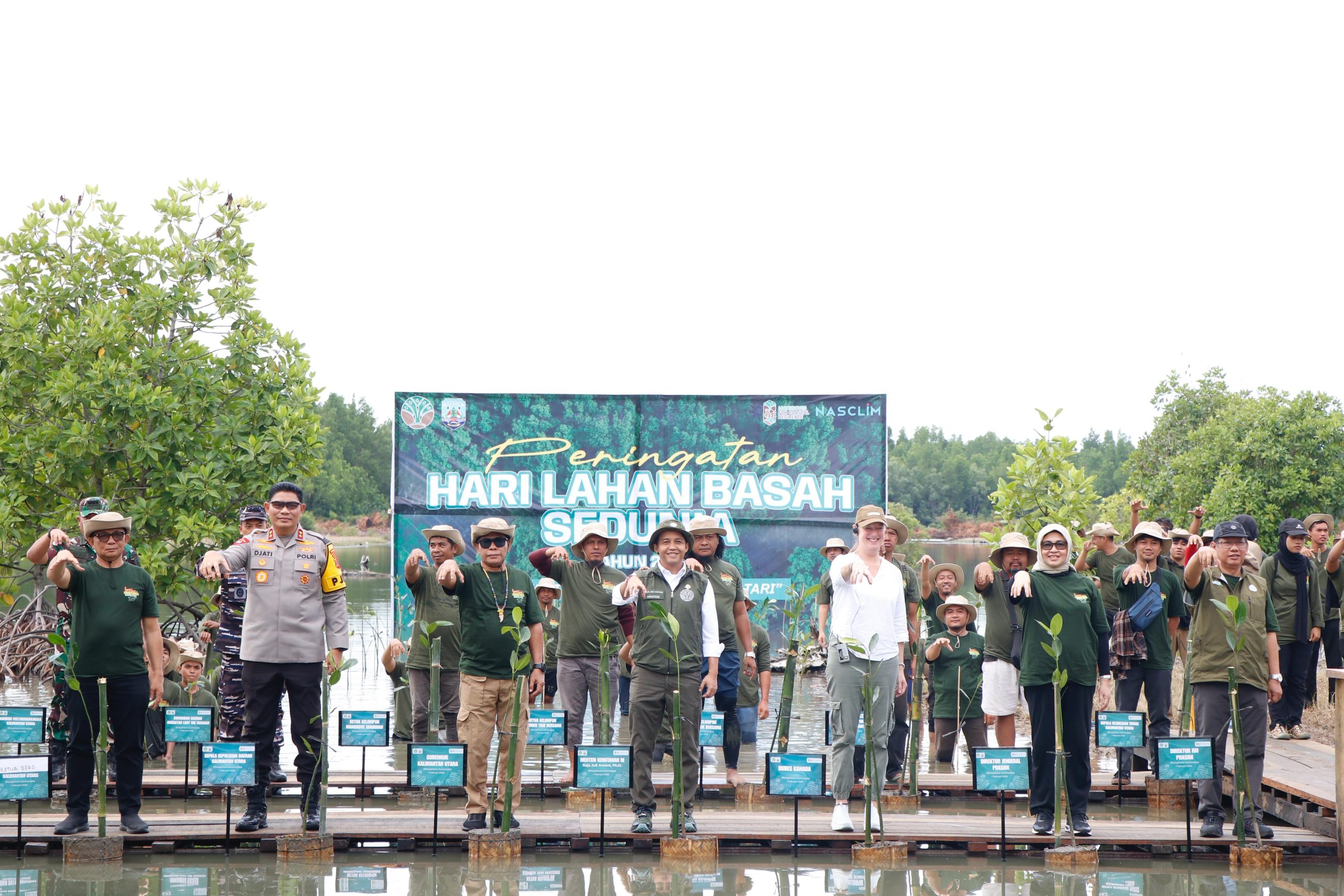 BULUNGAN, MK – Gubernur Kalimantan Utara (Kaltara), Dr. H. Zainal A. Paliwang, S.H., M.Hum bersama Menteri Kehutanan Republik Indonesia (Menhut RI), Raja Juli Antoni, MA., Ph.D., melakukan penanaman pohon mangrove dalam rangka memperingati Hari Lahan Basah Sedunia 2026 di Desa Liagu, Kecamatan Sekatak, Kabupaten Bulungan, Sabtu (7/2).
