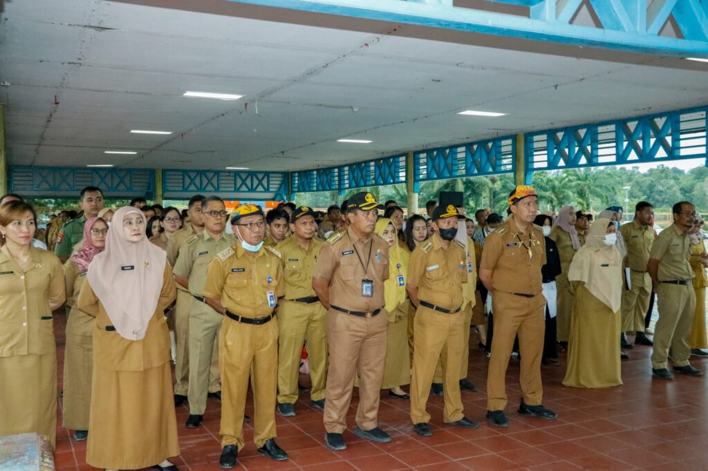 TANJUNG SELOR, MK – Asisten Bidang Kesejahteraan dan Pemerintah, Datu Iqro Ramadhan,S.Sos.,M.Si., memimpin apel rutin di lingkungan Pemprov Kaltara ditengah cuaca hujan yang cukup deras, bertempat di Tribun Lapangan Agathis, Senin (4/3) pagi. Datu Iqro dalam arahannya mengingatkan agar pegawai di lingkungan pemprov tidak terburu-buru dalam melakukan absensi.