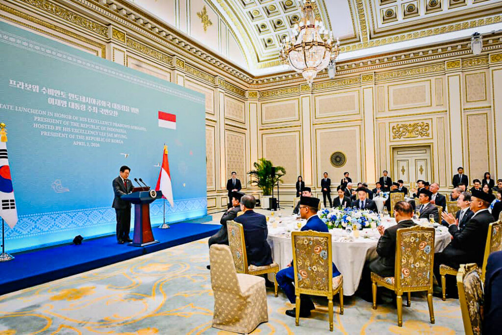Republik Korea, MK – Presiden Republik Korea Lee Jae Myung menyelenggarakan jamuan santap siang kenegaraan sebagai bentuk penghormatan kepada Presiden Republik Indonesia Prabowo Subianto dan delegasi Indonesia di Istana Kepresidenan Republik Korea, Cheong Wa Dae (Blue House), pada Rabu, 1 April 2026. Jamuan tersebut berlangsung hangat dan penuh keakraban, mencerminkan eratnya hubungan kedua negara.