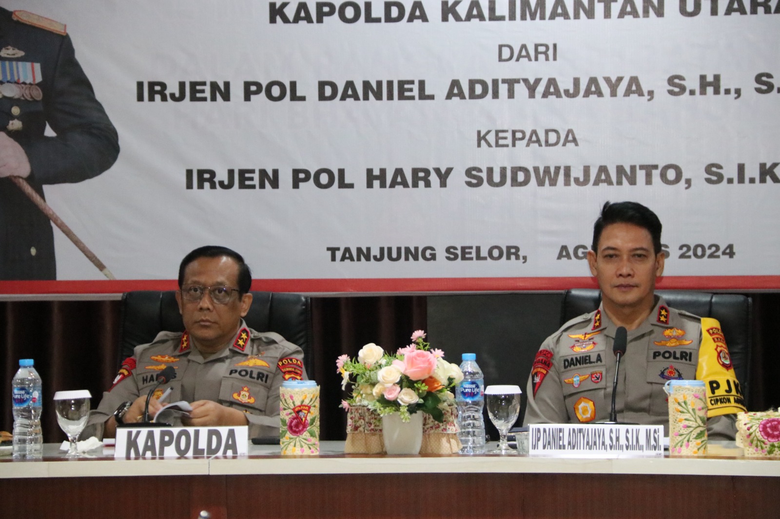 Kegiatan tersebut dihadiri langsung oleh Kapolda Kaltara Irjen Pol. Hary Sudwijanto, S.I.K., M.Si., Irjen Pol. Daniel Adityajaya, S.H., S.I.K., M.Si., Wakapolda Kaltara Brigjen Pol. Dr. Golkar Pangarso Rahardjo Winarsadi, S.H., S.I.K., M.H., dan para PJU serta Kapolres/Ta Jajaran Polda Kaltara.