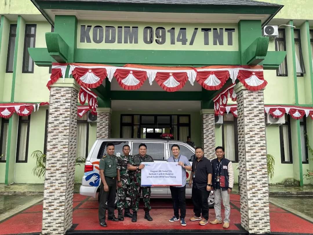 TANA TIDUNG, MK – Komando Distrik Militer, Kodim 0914/Tnt, menerima bantuan satu unit mobil Ambulance dari Bank Rakyat Indonesia (BRI) Cabang Tanjung Selor.