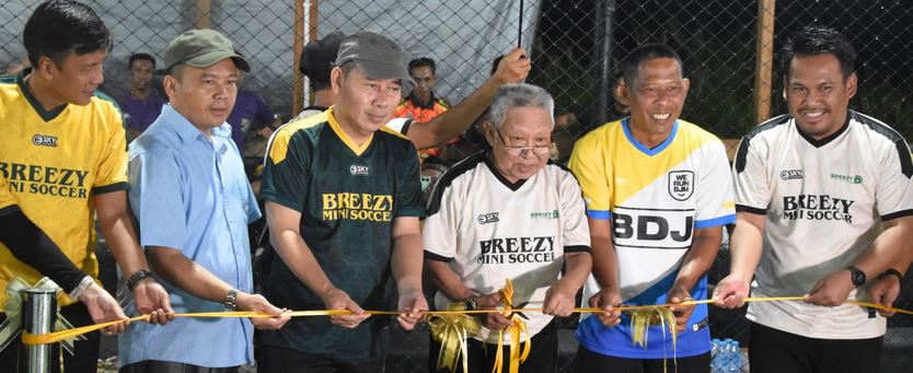 Bulungan, MK – Bupati Bulungan, Syarwani, S.Pd, M.Si bersama mantan Bupati, Drs H Budiman Arifin, M.Si mengikuti grand opening Breezy Mini Soccer yang dirangkai penutupan Piala Bupati Bulungan Turnamen Futsal 2024 di Jl Cendana, Tanjung Selor pada Sabtu (31/8). Bupati menyambut gembira kehadiran lapangan mini soccer di Bulungan yang memberikan wadah bagi penggemar sepakbola.