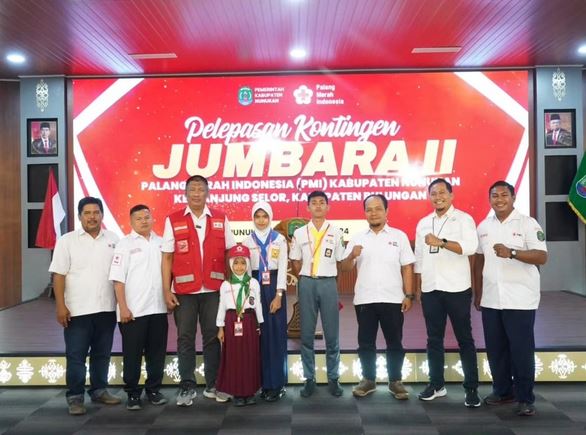 NUNUKAN, MK – Mewakili Bupati Nunukan Hj. Asmin Laura Hafid, Kepala Dinas Komunikasi, Informatika, Statistik, dan Persandian (Diskominfotik Persandian) Kaharuddin SS melepas tim Jumpa Bakti Gembira (Jumbara) Palang Merah Remaja (PMR) Kabupaten Nunukan dalam rangka mengikuti Jumbara Provinsi Ke-II di Kebun Raya Bundayati Tanjung Selor Kabupaten Bulungan.