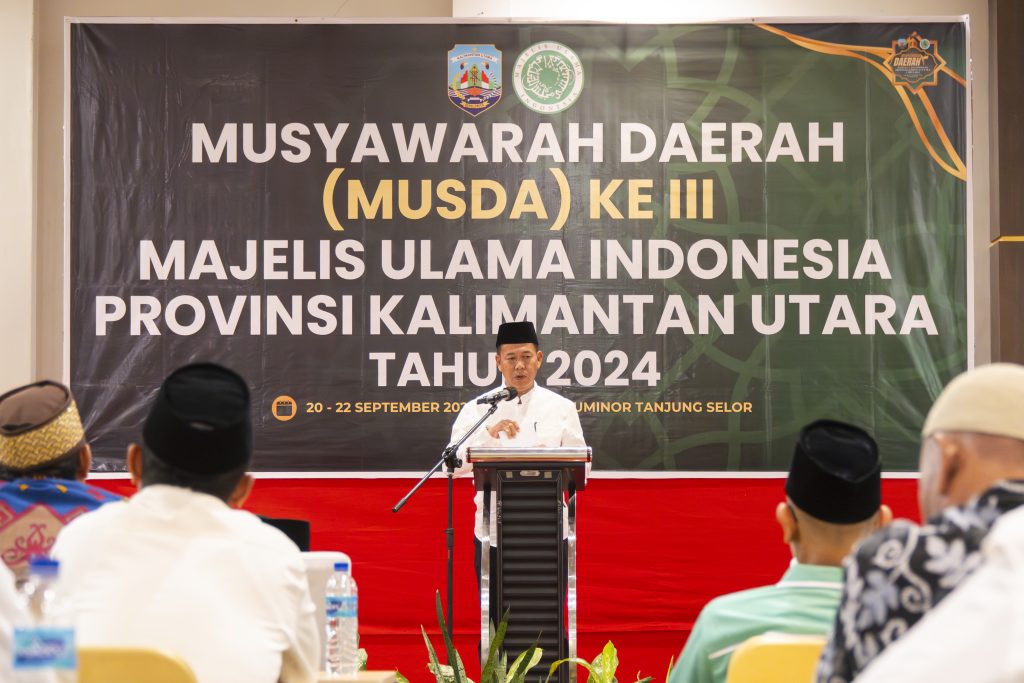 TANJUNG SELOR, MK – Asisten Bidang Pemerintah dan Kesejahteraan Rakyat Sekretariat Daerah (Setda) Kalimantan Utara (Kaltara), Datu Iqro Ramadhan, S.Sos., M.Si., mewakili Gubernur Kaltara, Dr. H. Zainal A. Paliwang, SH, M.Hum, secara resmi membuka Musyawarah Daerah (Musda) ke-III Majelis Ulama Indonesia (MUI) Kaltara tahun 2024, di Ballroom Hotel Luminor, Jumat, (20/9).