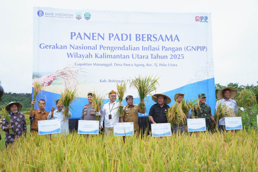 BULUNGAN, MK – Gubernur Kalimantan Utara (Kaltara) Dr. H. Zainal A. Paliwang, S.H., M.Hum., mengikuti kegiatan Panen Padi Bersama dalam rangka Gerakan Nasional Pengendalian Inflasi Pangan (GNPIP) di Lahan Persawahan Gapokan Manunggal, Desa Panca Agung, Kecamatan Tanjung Palas Utara, Kabupaten Bulungan, Selasa (11/2).