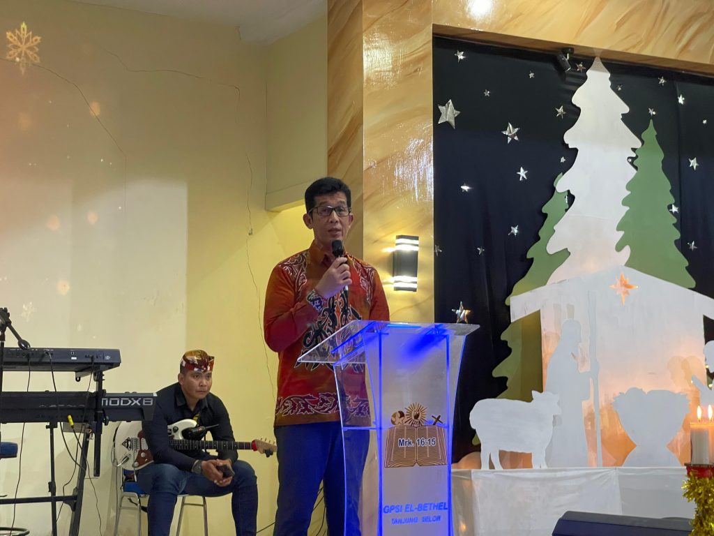 TANJUNG SELOR, MK – mewakili Gubernur Kalimantan Utara (Kaltara), Dr. H. Zainal A. Paliwang, S.H., M.Hum.,Kepala Dinas Sosial (Dinsos) Kaltara, Obed Daniel, S.Sos., menghadiri Perayaan Natal bersama Jemaat Gereja Pentakosta Serikat Indonesia (GPSI) EL-Bethel pada Jumat, (13/12).