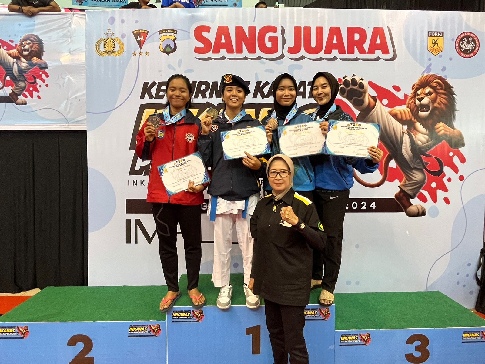 Adapun Personel yang berhasil meraih juara di Kejuaraan Karate Inkanas Piala Kapolri Cup 2024, yang pertama yaitu Srikandi Brimob Kaltara Bripda Theresia Otnel, Juara 1 Kelas-61 Kg Putri / Kelas Khusus Polri (Medali Emas). Kemudian Personel Polki juga berhasil meraih juara atas nama Bripda Nikolas, Juara 2 Kelas – 55 Kg / Kelas Khusus Polri (Medali Perak)