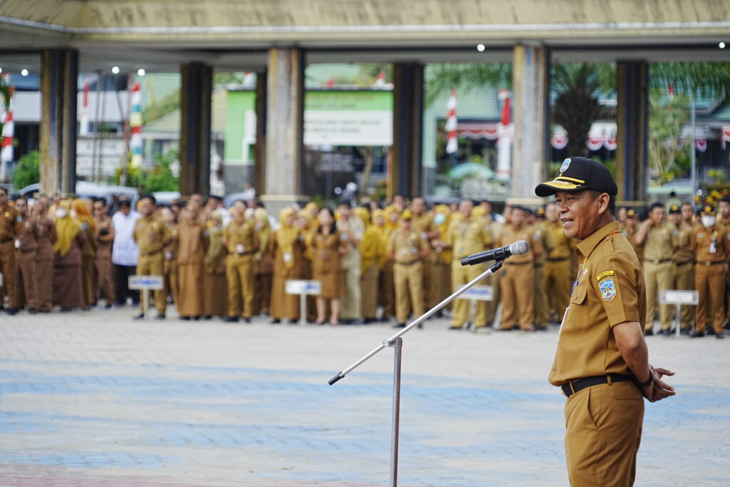 TANJUNG SELOR, MK – Gubernur Kalimantan Utara (Kaltara) diwakili Asisten Bidang Pemerintahan dan Kesejahteraan Rakyat, H. Datu Iqro Ramadhan, S.Sos., M.Si memimpin apel pagi gabungan di lingkup Pemerintahan Provinsi (Pemprov) Kaltara di Lapangan Agatis, Senin (4/8) pagi.