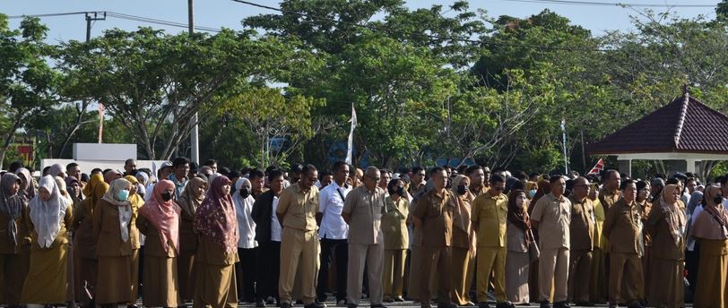 Bulungan, MK – Pjs Bupati Bulungan, H Haerumuddin, SH, MAP memimpin apel bersama gabungan OPD di halaman Kantor Bupati pada Senin (30/9). Disampaikan, menjelang Pemilihan Kepala Daerah (Pilkada) dalam waktu dekat segenap ASN Pemkab diharapkan tetap netral, disiplin dan bekerja keras memberikan pelayanan ke masyarakat.