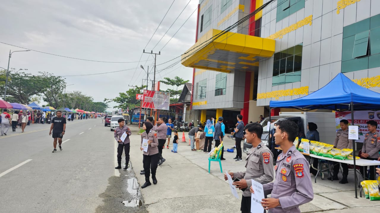 TANJUNG SELOR, MK – Ditbinmas Polda Kalimantan Utara dan Sat Binmas Polresta Bulungan bekerja sama dengan Bulog Kabupaten Bulungan menggelar acara “Pangan Murah” di area Car Free Day (CFD) Tebu Kayan, depan Hotel Pangeran Khar, Jalan Katamso, Tanjung Selor. Kegiatan yang berlangsung pada Minggu (10/8/2025) mulai pukul 06.00 Wita ini bertujuan untuk membantu masyarakat mendapatkan kebutuhan pokok dengan harga terjangkau.