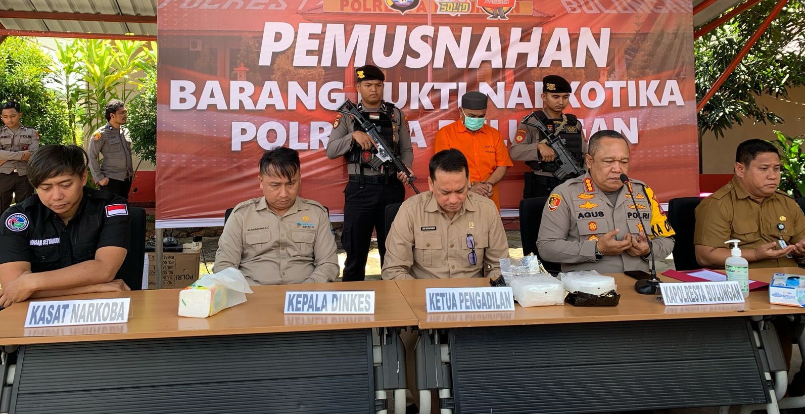 Bulungan, MK – Polresta Bulungan Melakukan Pemusnahan Sabu Seberat 15 Kilogram Dan 3.400 Pil Ekstasi Dengan Melarutkan Ke Dalam Wadah Berisi Air. Barang bukti itu berasal dari dari Tawau, Malaysia yang diamankan pada desember 2023.