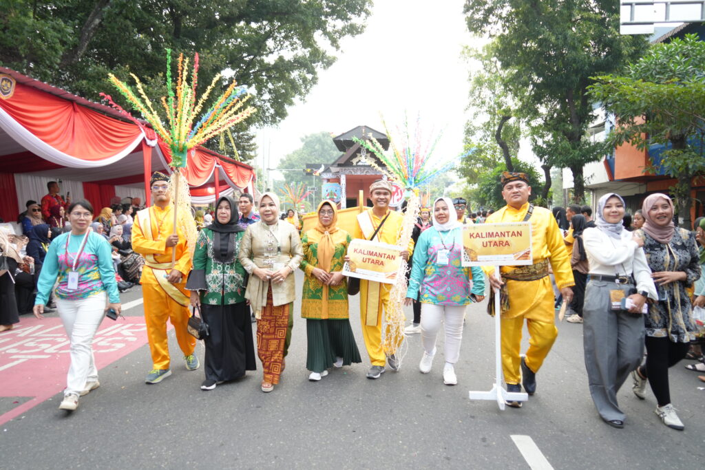 Hj Rahmawati sendiri sempat berpartisipasi ketika mobil hias Kaltara melewati panggung VIP. Didampingi Wakil Ketua Harian Dekranasda Kaltara, Sekretaris Dekranasda Kaltara serta Sekretaris Umum TP-PKK Kaltara, ia turut menari bersama penari yang mengiringi mobil hias Kaltara.(**)