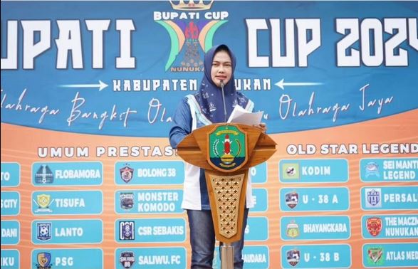NUNUKAN, MK – Bupati Nunukan Hj. Asmin Laura Hafid membuka resmi Turnamen Sepak Bola Bupati Cup Nunukan 2024 yang digelar dalam rangka HUT Kabupaten Nunukan ke – 25. Turnamen tersebut dilaksanakan di Stadiun Sei Bilal Nunukan, Jumat (21/06).