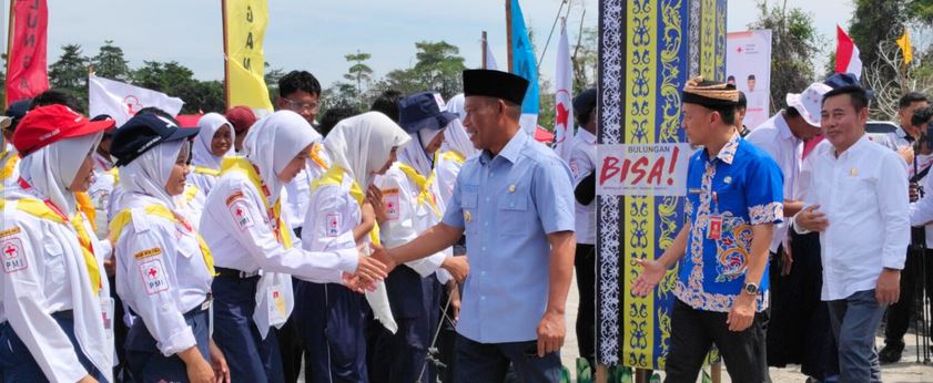 Bulungan, MK – Bupati Bulungan, Syarwani, S.Pd, M.Si didampingi Sekretaris Daerah, Risdianto, S.Pi, M.Si menyampaikan selamat datang kepada ratusan Palang Merah Remaja (PMR) yang mengikuti Jumpa Bakti Gembira (Jumbara) tingkat Provinsi Kalimantan Utara (Kaltara) tahun 2024 di Kebun Raya Bundayati di Jl Sengkawit, Tanjung Selor mulai Jumat (13/9).