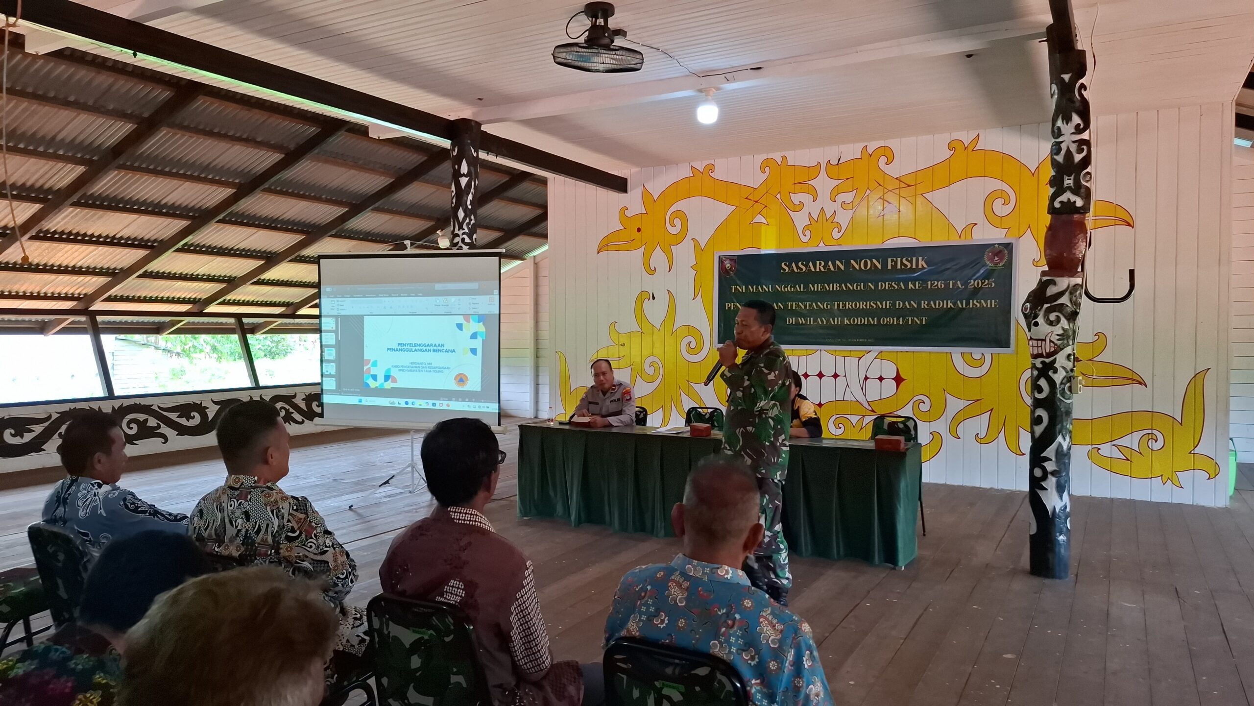 TANA TIDUNG, Metrokaltara.com — Kamis (23/10/2025) Dalam rangkaian kegiatan TNI Manunggal Membangun Desa (TMMD) ke-126 Tahun Anggaran 2025, Kodim 0914/Tana Tidung melalui Satgas TMMD menggelar kegiatan sosialisasi dan penyuluhan program pemerintah, Kamis (23/10/2025) pukul 09.20 Wita, bertempat di Rumah Adat Desa Limbu Sedulun, Kecamatan Sesayap, Kabupaten Tana Tidung.