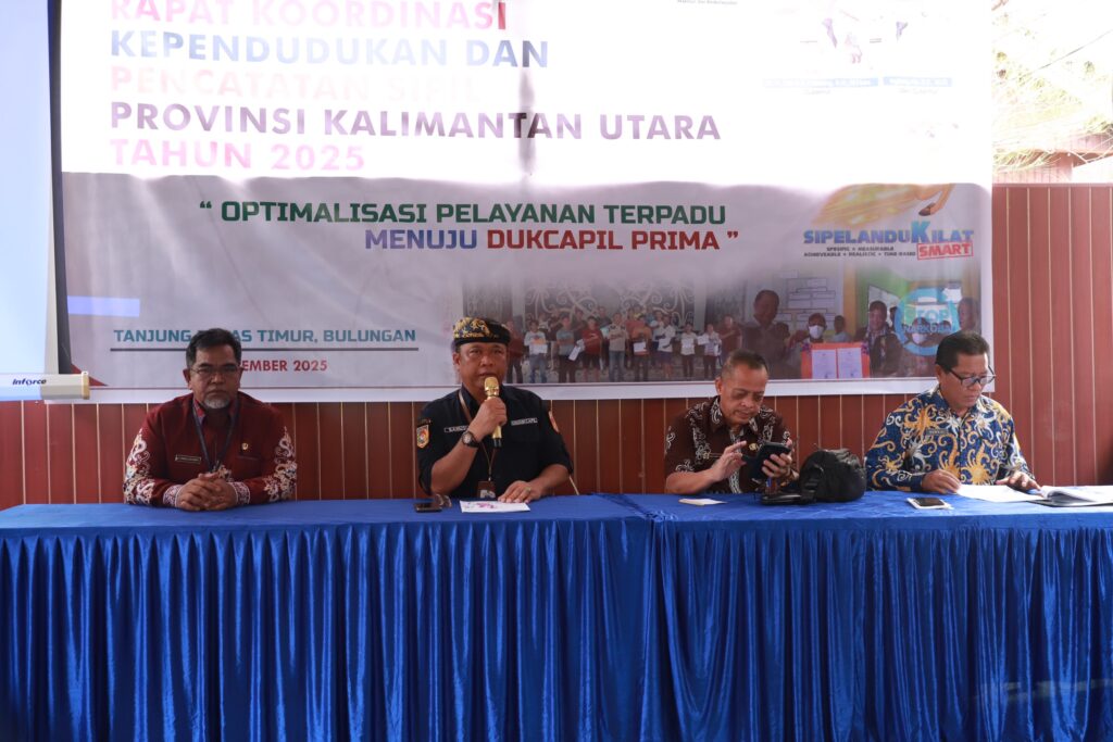 BULUNGAN, MK – Dinas Kependudukan dan Pencatatan Sipil (Disdukcapil) Kalimantan Utara (Kaltara) menggelar Rapat Koordinasi (Rakor) Kependudukan dan Pencatatan Sipil Kabupaten/Kota se-Kaltara Tahun 2025, digelar di Nero Homestay, Tanah Kuning, Tanjung Palas Timur, Kamis (6/11) pagi.