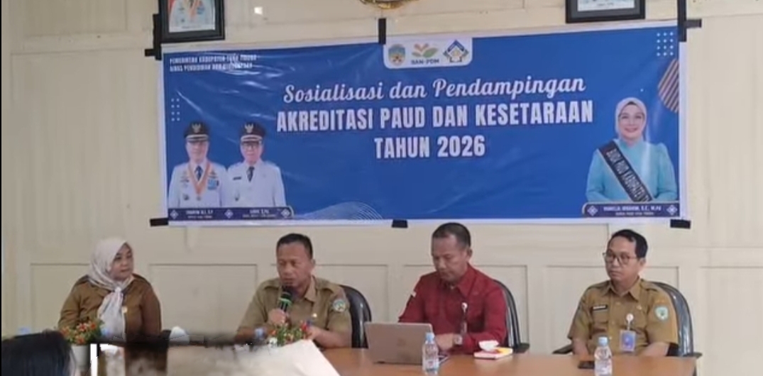 TANA TIDUNG, Metrokaltara.com – Komitmen Pemerintah Kabupaten Tana Tidung dalam meningkatkan kualitas pendidikan kembali ditegaskan. Melalui Dinas Pendidikan dan Kebudayaan (Disdikbud), pemda resmi membuka kegiatan Sosialisasi dan Pendampingan Akreditasi Pendidikan Anak Usia Dini (PAUD) dan Pendidikan Kesetaraan Tahun 2026 di Tideng Pale, Selasa (7/4/2026).