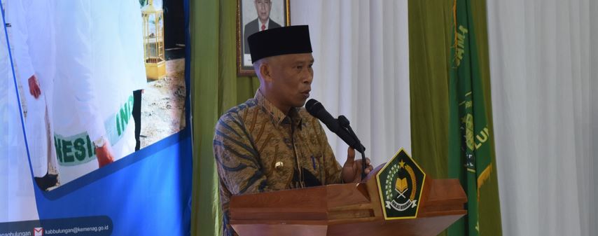 Bulungan, MK – Manasik haji berupa pembelajaran pelaksanaan ibadah haji sesuai dengan rukun-rukunnya bertujuan mencapai haji yang mabrur. Yaitu haji yang diterima Allah SWT, ibadah haji telah dilakukan dengan baik dan benar, berdampak pada kebaikan diri serta bermanfaat bagi orang lain. Hal itu disampaikan dalam pembukaan pembukaan Bimbingan Manasik Haji di Aula PLHUT Lantai 2 Kantor Kementerian Agama Bulungan pada Jumat (19/4) yang dihadiri Bupati Bulungan, Syarwani, S.Pd, M.Si.