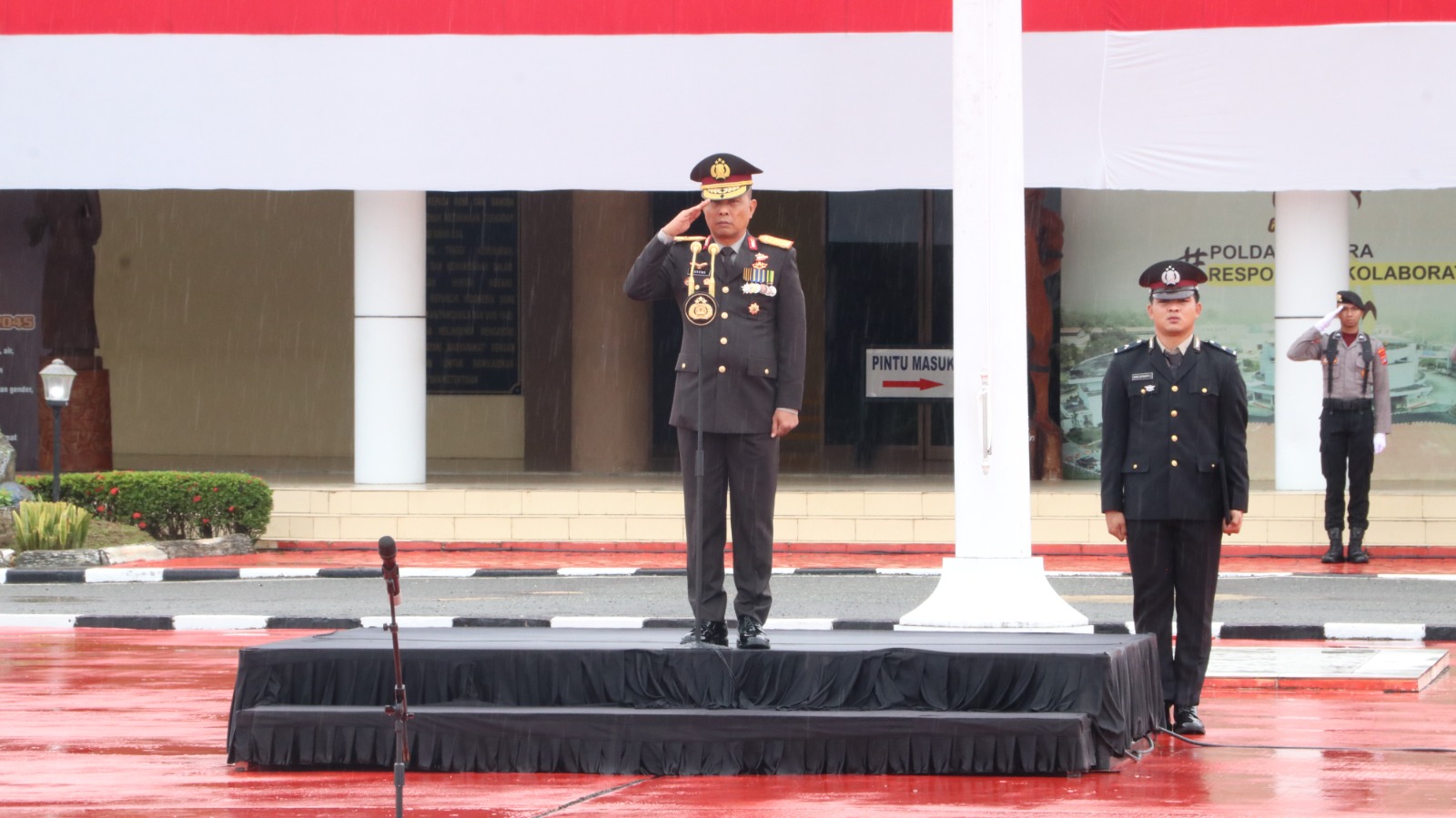 Upacara dimulai tepat pukul 08.00 WITA dan berlangsung dengan khidmat. Ditandai dengan pengibaran Sang Merah Putih yang diiringi lagu kebangsaan Indonesia Raya. Prosesi ini berhasil ditunaikan dengan baik oleh personel Polda Kaltara, membuat bendera Merah Putih tampak gagah berkibar di Polda Kaltara.